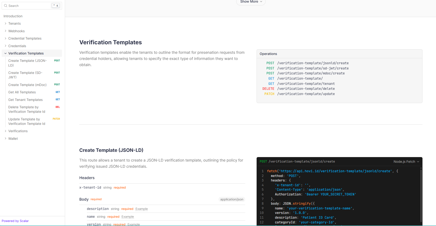 Hovi’s Verification Templates endpoints allow you to create, delete, update and retrieve reusable verification templates across your entire ecosystem. Depending on the ecosystem you have established, you can build verification templates for various credential types: