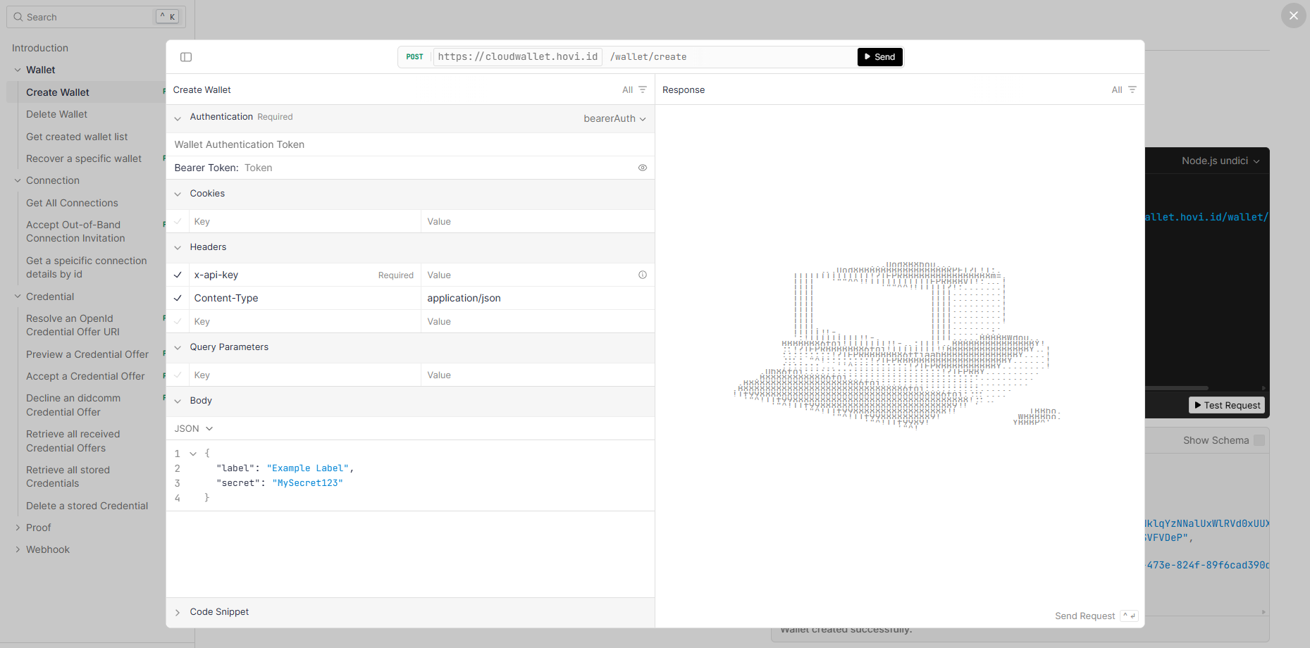 Here’s a request example depicting how to use an API key as a Bearer token to create a new wallet: