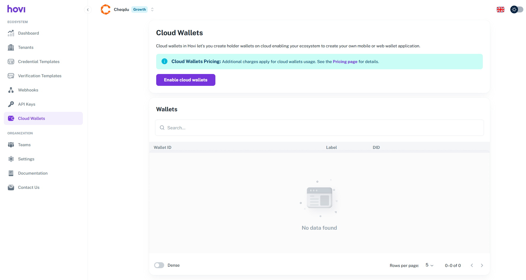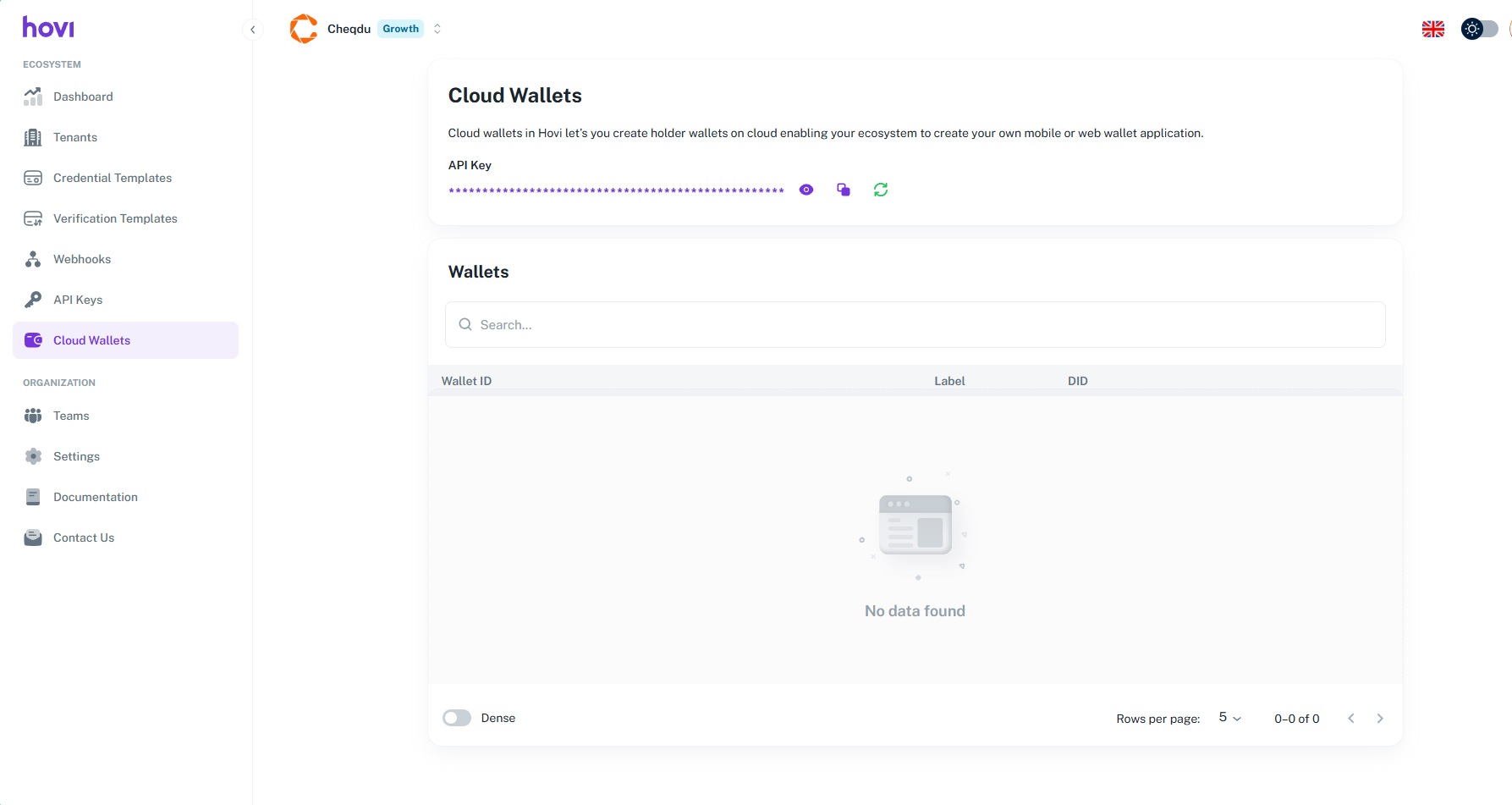 Before retrieving your Cloud Wallet API key, make sure you have completed the basic Hovi Studio onboarding process — including account registration, ecosystem setup, and environment selection.