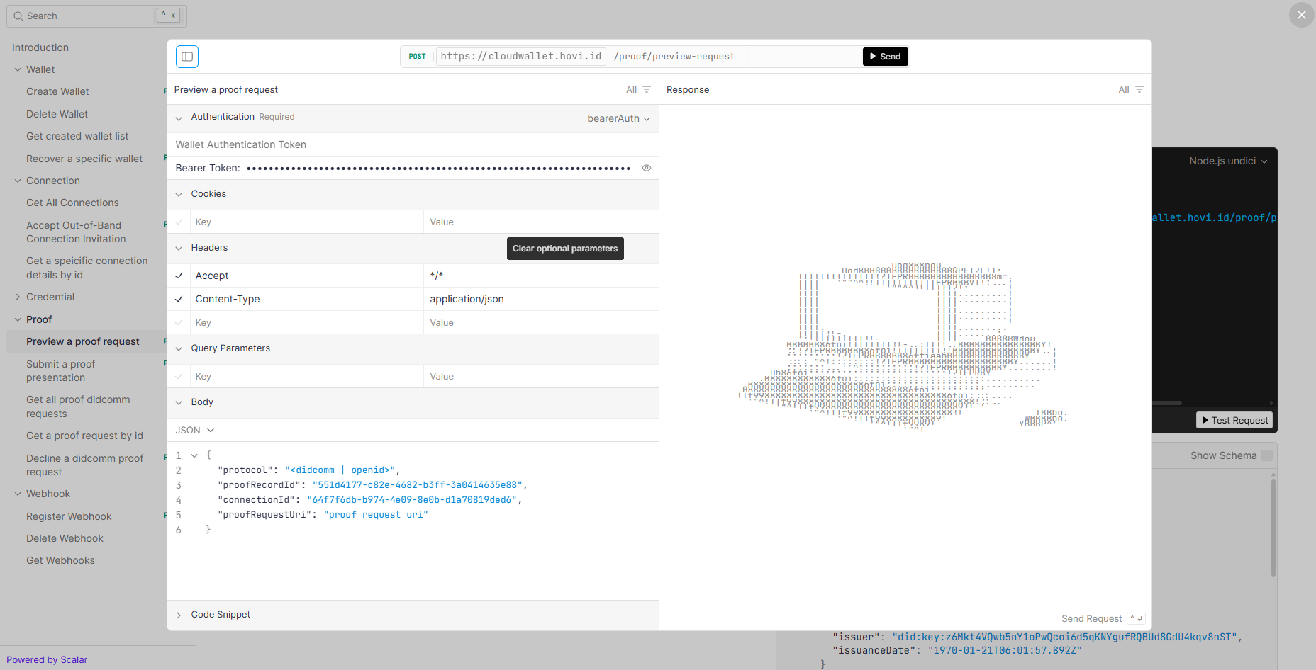 Click “Send”. If successful, You will be able to see the preview proof request response.