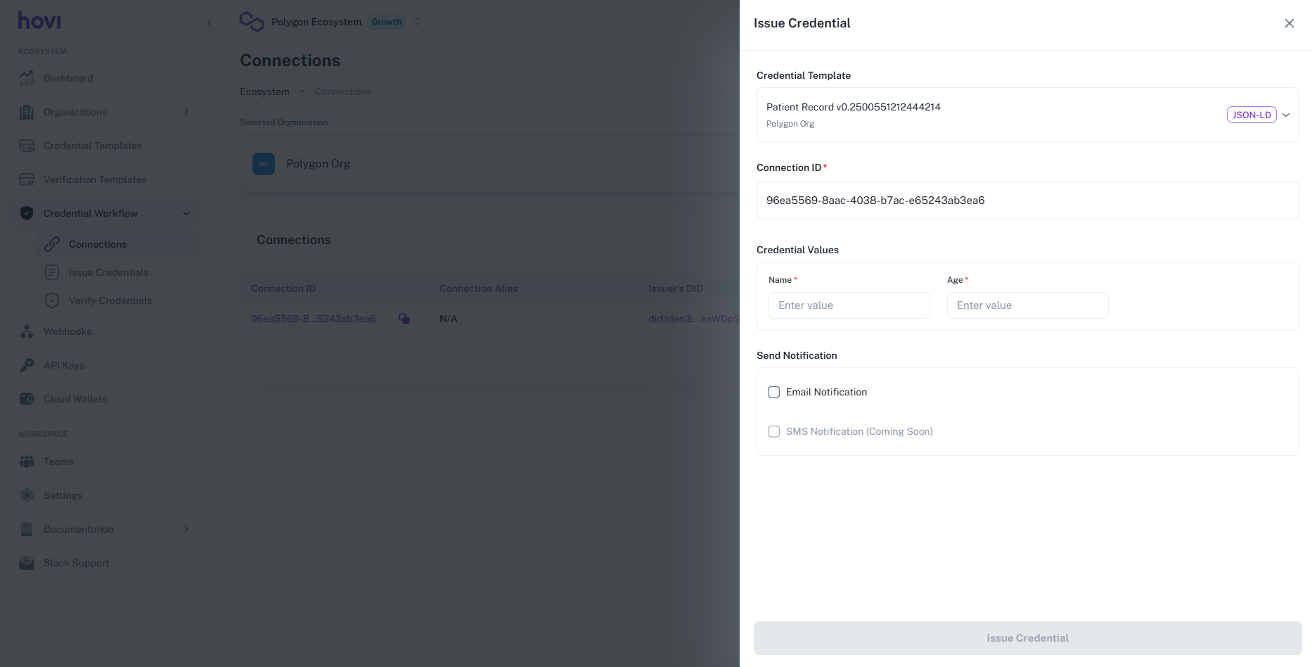 Follow these steps to issue a credential in Hovi Studio for Privado.ID ecosystem.